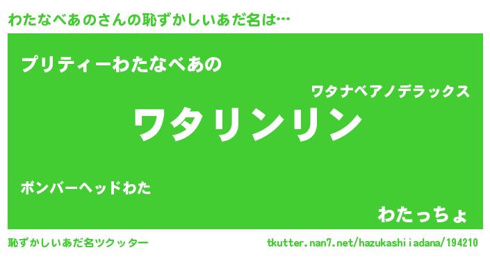 | 意味不明あだ名 | 『とにかく怪しいわたなべあの』 |