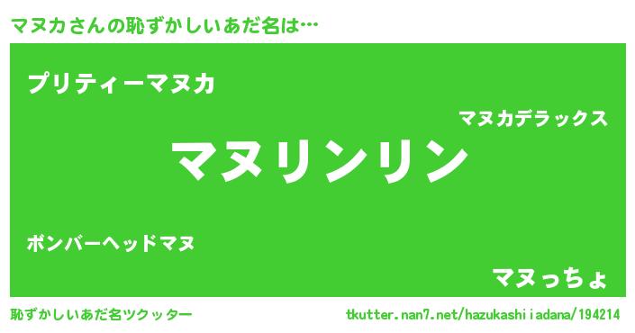 | 意味不明あだ名 | 『住所不定無職マヌカ(3歳)』 |