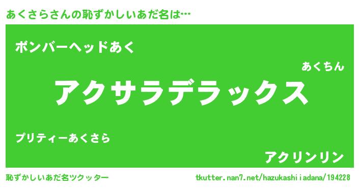 | ヒーロー風カッコイイあだ名 | 『究極戦士アクサラ』『炎刃騎士アク』 |