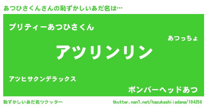| 男性向けラノベタイトル風あだ名 | 『はたらくあつひさくんさま!』 |