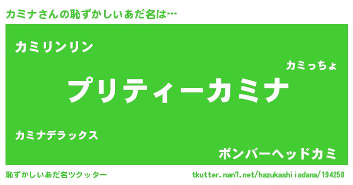 | ヒーロー風カッコイイあだ名 | 『仮面カミダー』『スーパーカミナ』 |