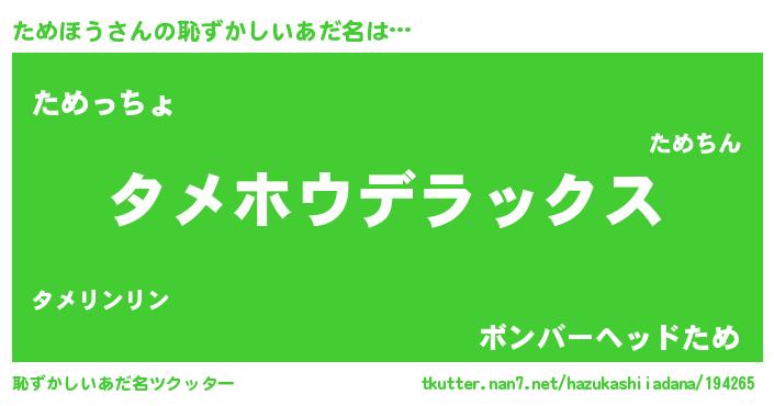 | ヒーロー風カッコイイあだ名 | 『最強戦士タメホウ』『仮面タメダー』 |