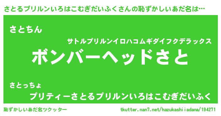 | ヘコむあだ名 | 『さとるプリルンいろはこむぎだいふく(小並感)』 |