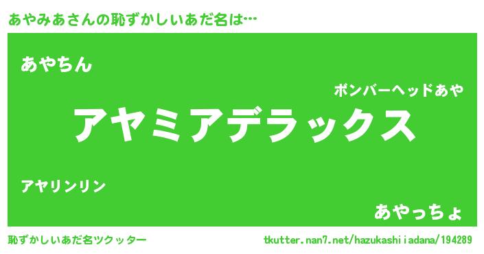 | ヒーロー風カッコイイあだ名 | 『ウルトラ戦士アヤミア』『ネオアヤミア』 |