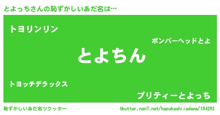 | ヘコむあだ名 | 『とよっち(震え声)』『とよ太郎』 |