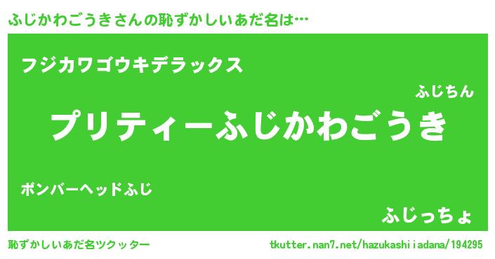 | 男性向けラノベタイトル風あだ名 | 『ふじかわごうきに滅ぼされるだけの簡単なお仕事です』 |