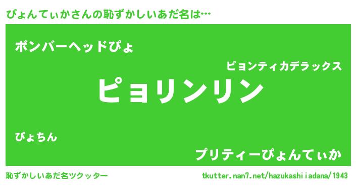 | 胡散臭い通販商品みたいなあだ名 | 『信頼と実績のサプリメント…その名も「ぴょんてぃか」』 |