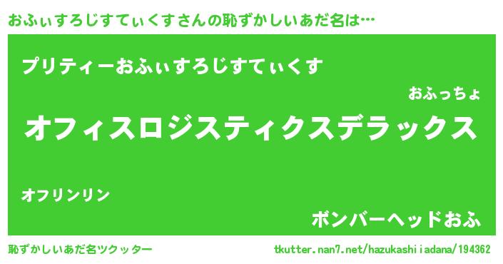 | 男性向けラノベタイトル風あだ名 | 『転生したらおふぃすろじすてぃくすだった件』 |