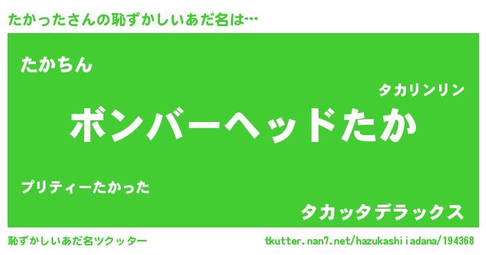 | ヘコむあだ名 | 『たかった(笑)』『たかっちょ』 |