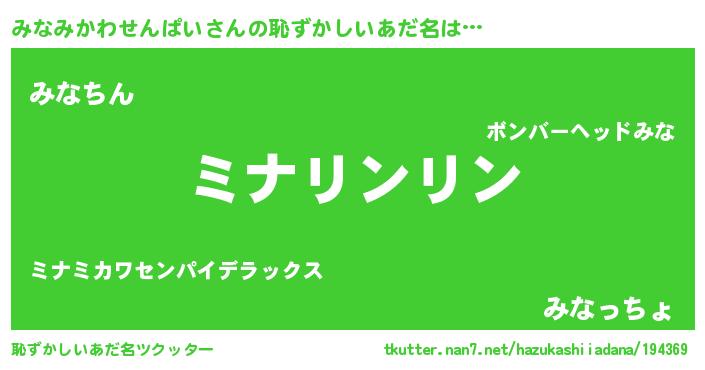 | 意味不明あだ名 | 『とにかく怪しいみなみかわせんぱい』 |