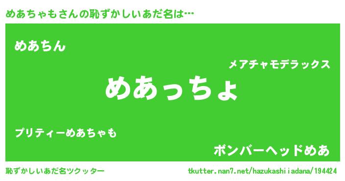 | 意味不明あだ名 | 『めあちゃもフォーエバー』 |
