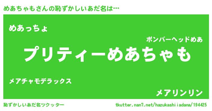 | 2回繰り返すあだ名 | 『めあめあ』『とろとろ』『めめああ』 |