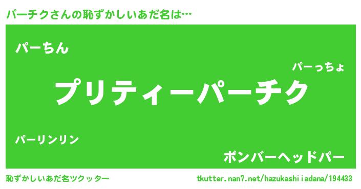 | 意味不明あだ名 | 『ペロリンパーチク』『永久保存パーチク』 |