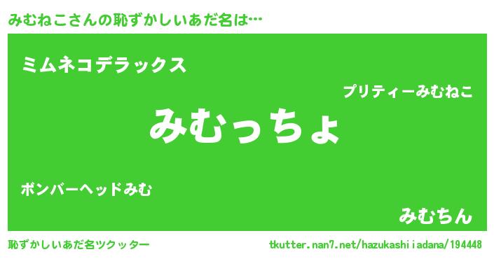 | ファンタジー風あだ名 | 『エターナルミムネコー』『ゼミムトゥ』 |