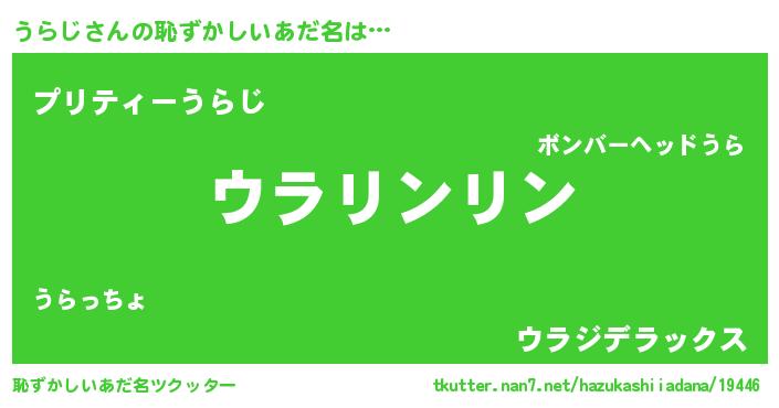 | 意味不明あだ名 | 『とにかく怪しいうらじ』『自称うらじ』 |