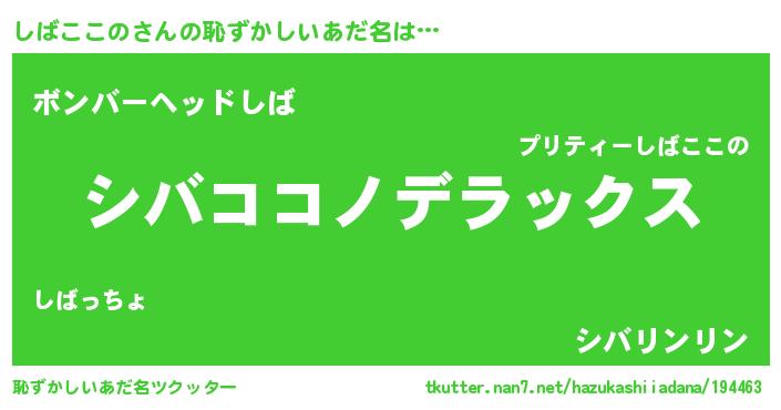 | ヒーロー風カッコイイあだ名 | 『超時空戦士シバココノ』『仮面シバダー』 |