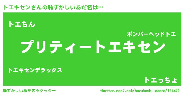| ヒーロー風カッコイイあだ名 | 『スーパートエキセン』『ネオトエキセン』 |
