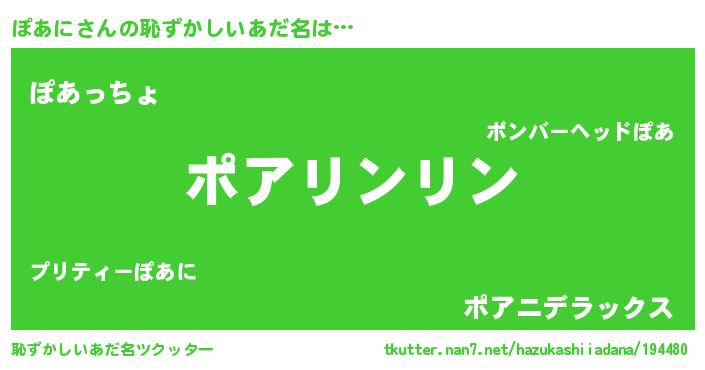| 男性向けラノベタイトル風あだ名 | 『ダンジョンにぽあにを求めるのは間違っているだろうか』 |
