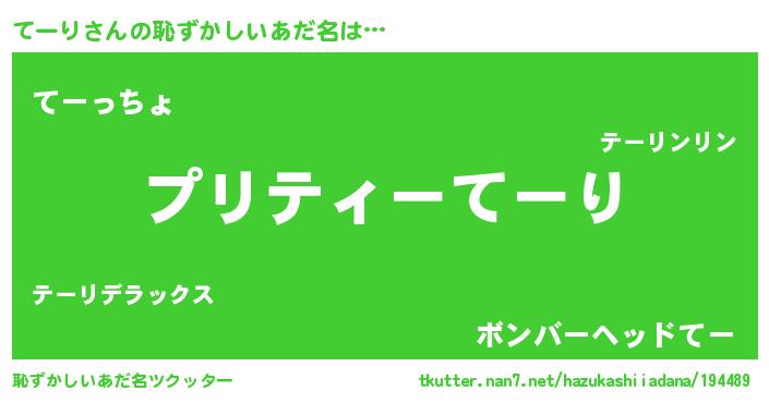 | ポケモン風あだ名 | 『テーチュウ』『テーリダネ』 |