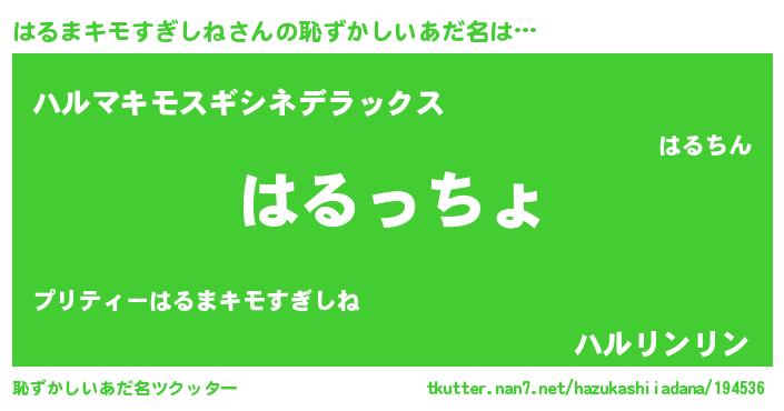 | 意味不明あだ名 | 『はるまキモすぎしねフォーエバー』 |