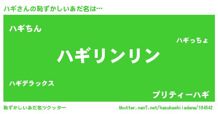| ポケモン風あだ名 | 『ハギゴンZ』『ヒハギ』『ゼニハギ』 |