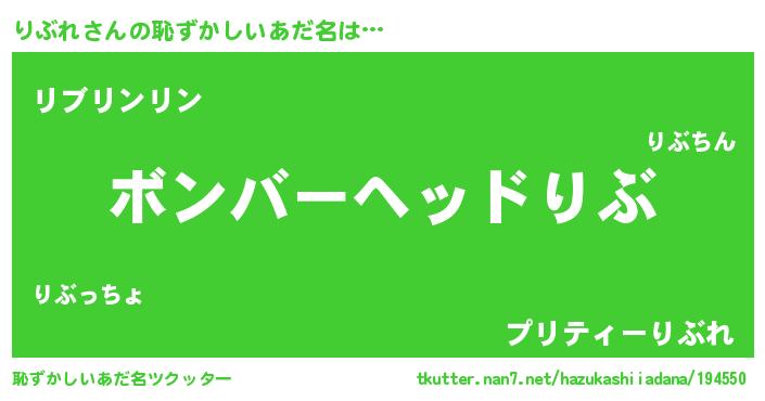 | 男性向けラノベタイトル風あだ名 | 『リブレスレイヤー』『りぶれの憂鬱』 |