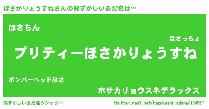 | ヘコむあだ名 | 『ほさにー』『ほさかりょうすね(小並感)』 |
