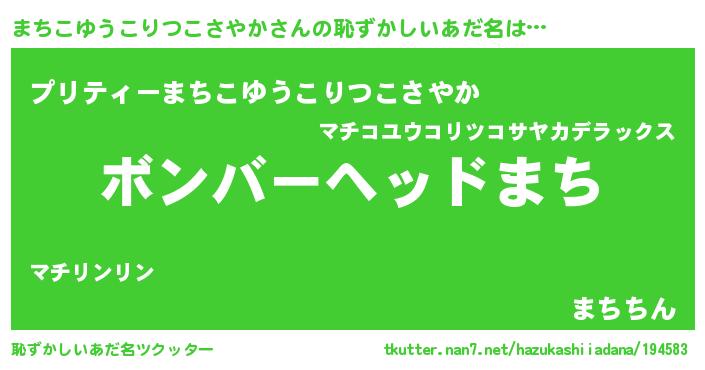 | 意味不明あだ名 | 『住所不定無職まちこゆうこりつこさやか(50歳)』 |