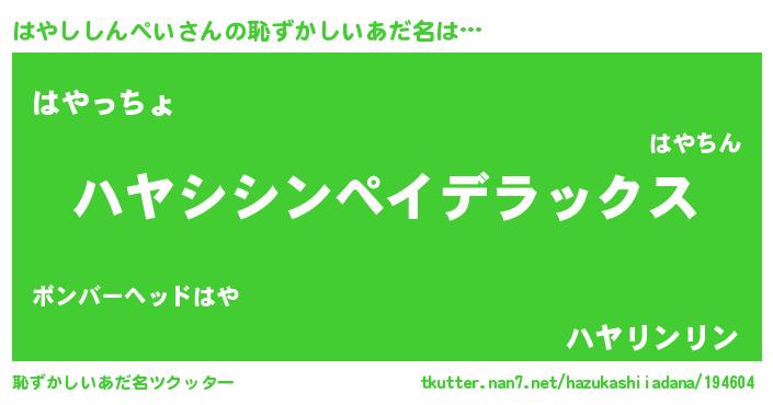 | 意味不明あだ名 | 『自称はやししんぺい』 |