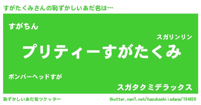 | ヘコむあだ名 | 『すがふぇ~』『すがたくみ(震え声)』 |