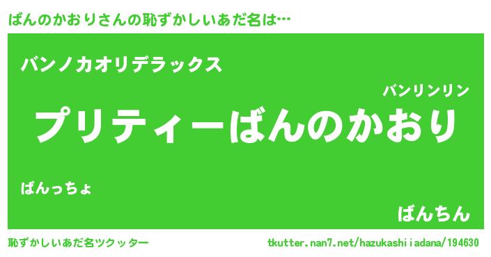 | 男性向けラノベタイトル風あだ名 | 『ばんのかおりの憂鬱』 |