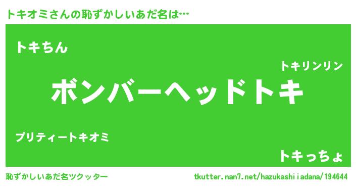| ヘコむあだ名 | 『トキオミ(苦笑)』『なまこ酢』 |