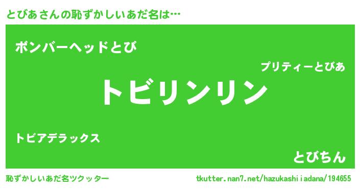 | 女子向けラノベタイトル風あだ名 | 『とびあ様がみてる』『死神とびあの再婚』 |