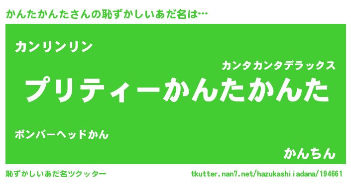 | 胡散臭い通販商品みたいなあだ名 | 『モテモテ間違いなし霊験あらたかなお札…その名も「かんたかんた」』 |
