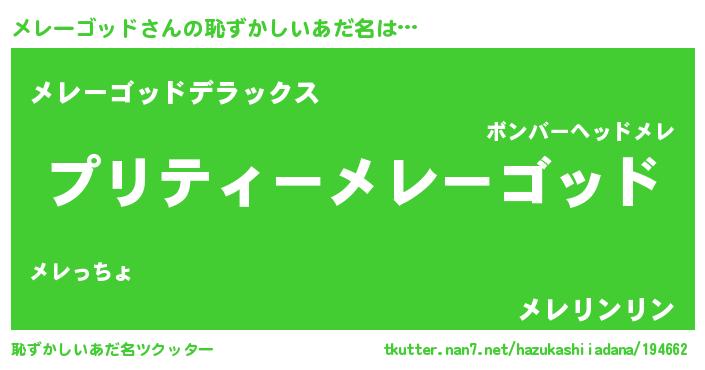 | ヒーロー風カッコイイあだ名 | 『仮面メレダー』『スーパーメレーゴッド』 |
