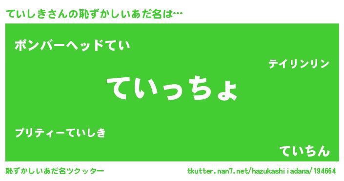 | 意味不明あだ名 | 『ていしきフォーエバー』 |