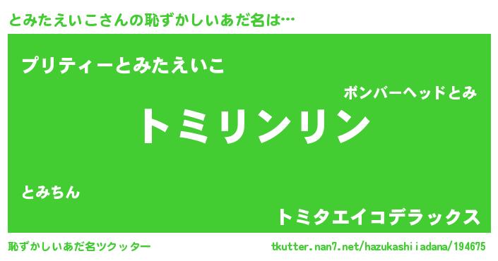 | 男性向けラノベタイトル風あだ名 | 『魔弾の王ととみたえいこ』 |