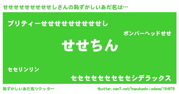 | 意味不明あだ名 | 『住所不定無職せせせせせせせせせし(10歳)』 |