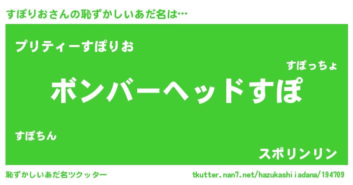 | ヘコむあだ名 | 『すぽにゅー』『すぽっちょ』 |