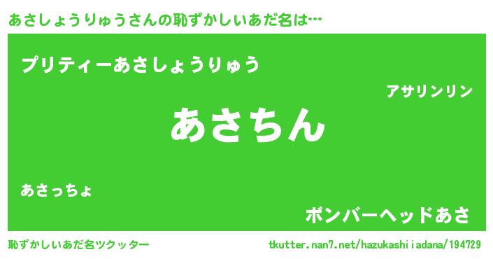 | ヘコむあだ名 | 『あさしょうりゅう(笑)』『あさにー』 |