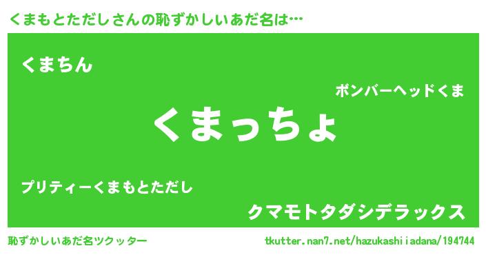 | 伝説のあだ名 | 『秘められし陰陽師くまもとただし』 |