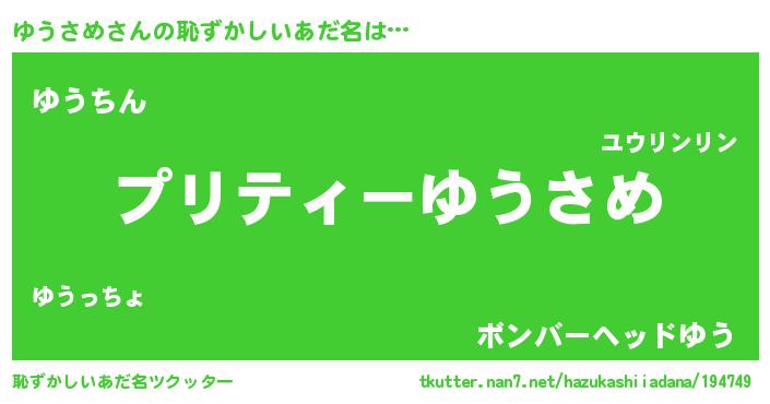 | ヘコむあだ名 | 『ゆうにゅー』『ゆうさめ(遠い目)』 |