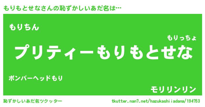 | ヘコむあだ名 | 『もりふぇ~』『もりもとせな(笑)』 |