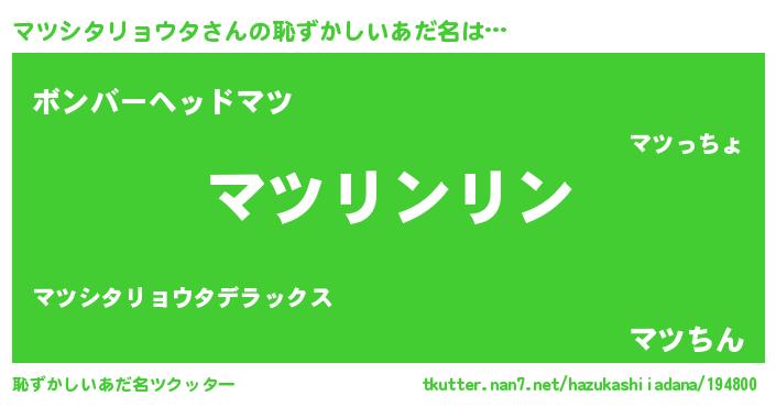 | 意味不明あだ名 | 『とにかく怪しいマツシタリョウタ』 |