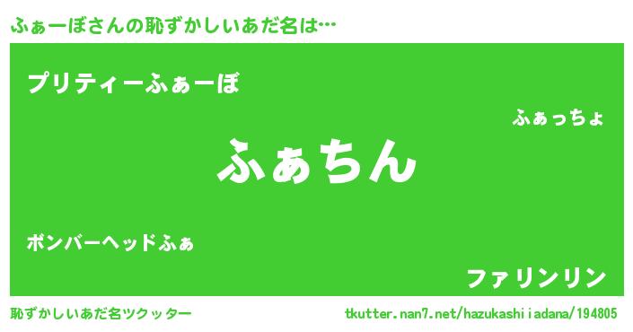 | ヘコむあだ名 | 『ふぁーぼ(笑)』『ふぁもー』 |
