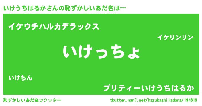 | 可愛いあだ名 | 『いけちー』『いけうちぇる』 |