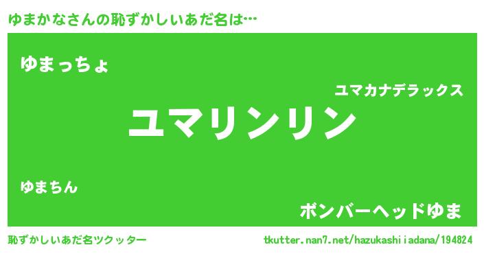 | ヒーロー風カッコイイあだ名 | 『天弓騎士ユマ』『ウルトラゆまかなマン』 |