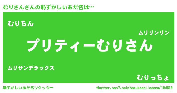 | 意味不明あだ名 | 『ペロリンむりさん』『永久保存むりさん』 |