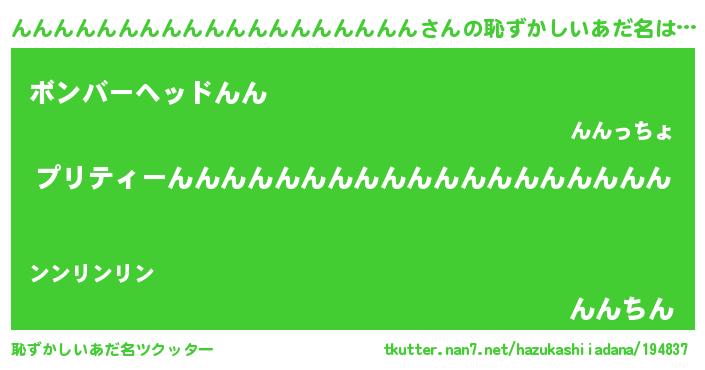 | 男性向けラノベタイトル風あだ名 | 『この素晴らしい世界にんんんんんんんんんんんんんんんんんんんを!』 |