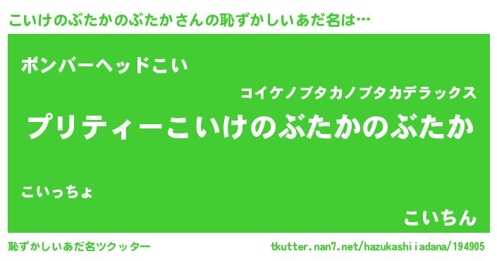 | 男性向けラノベタイトル風あだ名 | 『はたらくこいけのぶたかのぶたかさま!』 |
